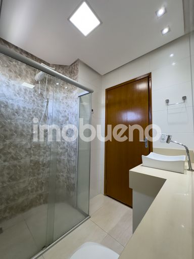 Banheiro com espelho e box;