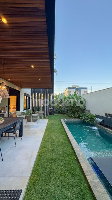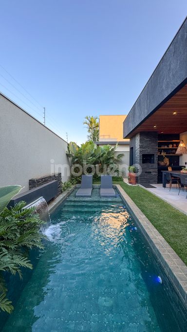 Piscina com cascata;