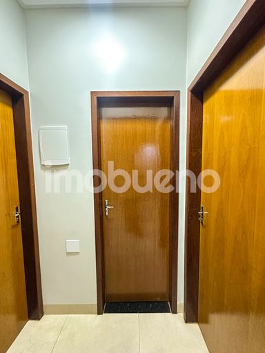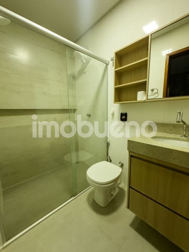 Banheiros com armários planejados e box;